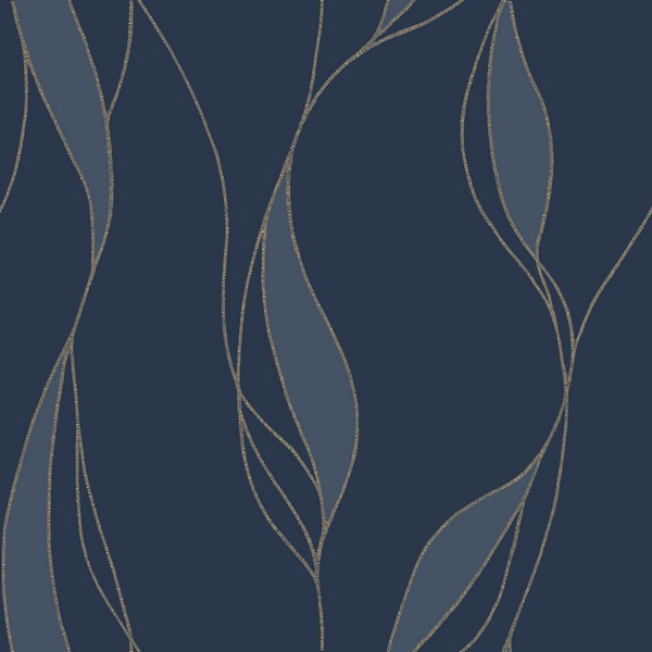 Pattern Name:Society Hill Navy Abstract Leaf Wallpaper