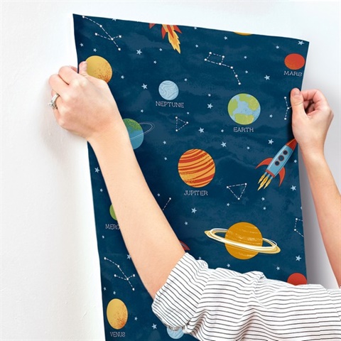 Pattern Name:Solar System Blue Outer Space Wallpaper