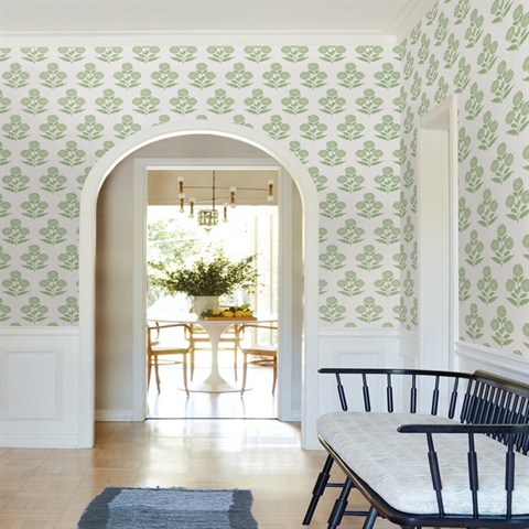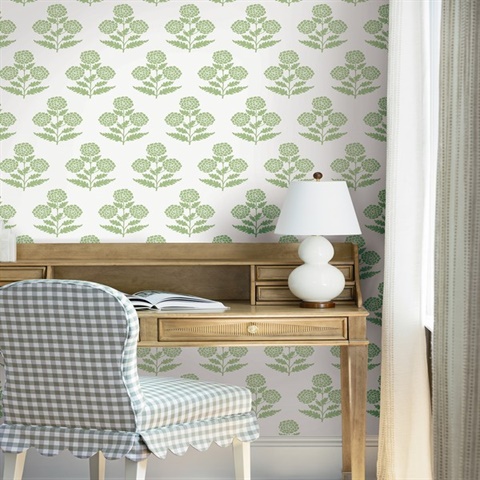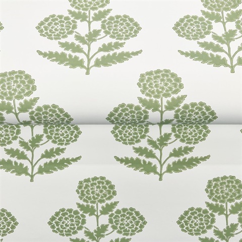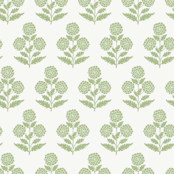 Pattern Name:Souci Green Marigolds Block Floral Wallpaper