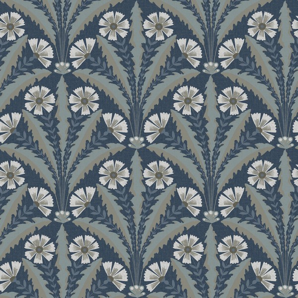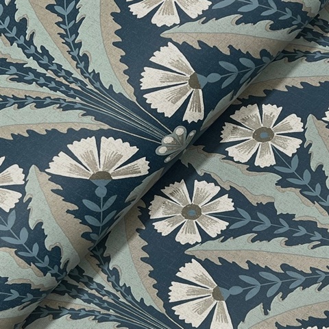 Tap Root Dark Blue Floral Damask Wallpaper