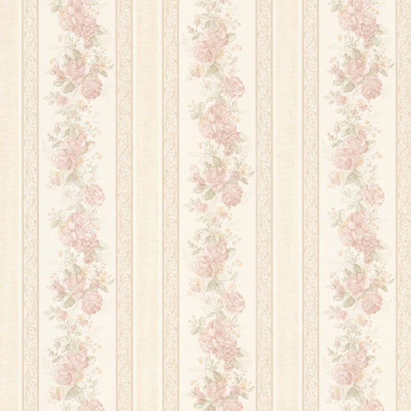 Tasha Blush Satin Floral Scroll Stripe Wallpaper, 992-68315