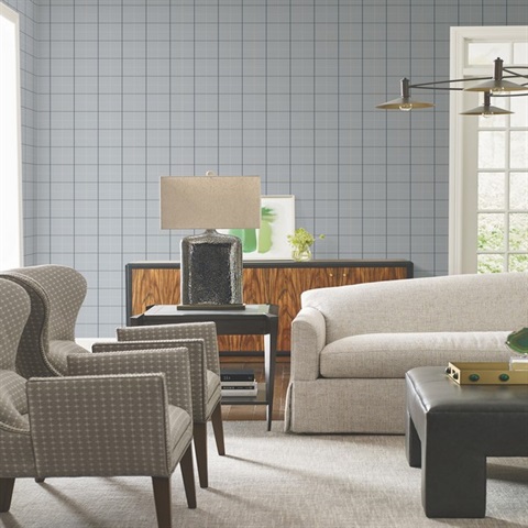 Pattern Name:Tattersall Blue Plaid Wallpaper