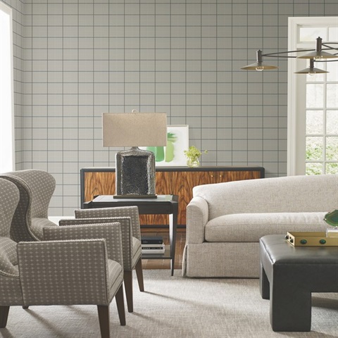Pattern Name:Tattersall Grey Plaid Wallpaper