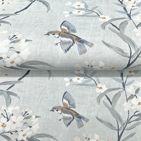 Pattern Name:Tea Olive Light Blue Finch Frolic Wallpaper