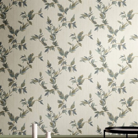 Pattern Name:Thin Leaf Beige Green Italian Wallpaper