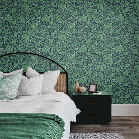 Tonal Paisley Paisely Spearmint & Navy (Nextwall) Peel and Stick Wallpaper