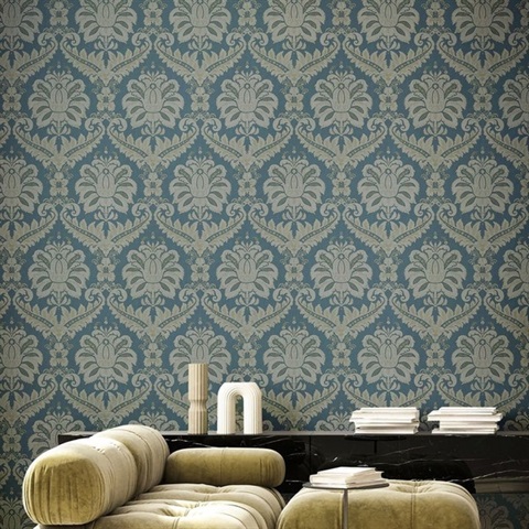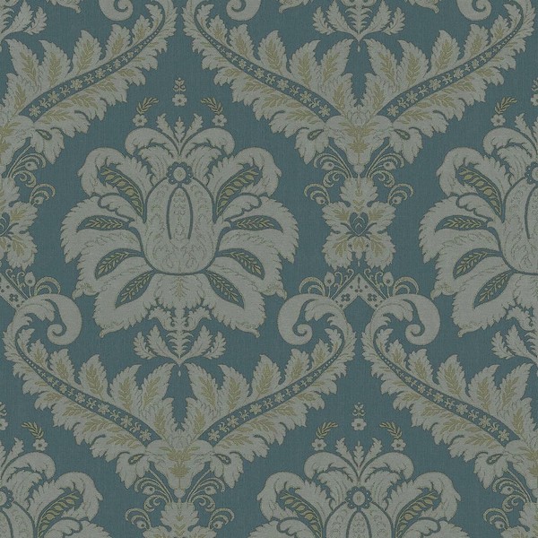 Linen Traditional Damask Green Gold Italian Wallpaper