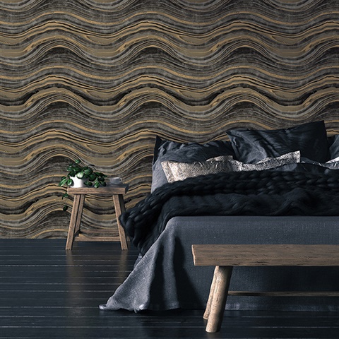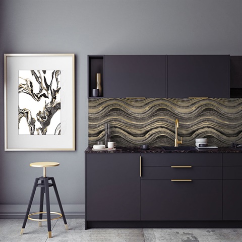Pattern Name:Travertine Black & Gold Peel and Stick Wallpaper
