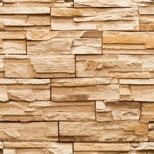 The Travertine Stacked Stone wallpaper features a realistic image of stacked travertine stones that has a rustic appeal. The different tangerine highlights of this design create a whimsical vibe.