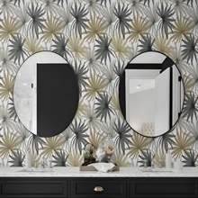Lillian August Peel and Stick Tropic Palm Toss Botanical Harbor Grey & Khaki Wallpaper