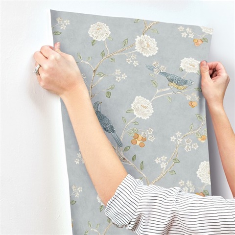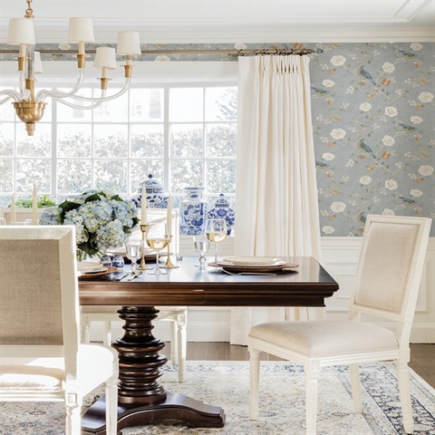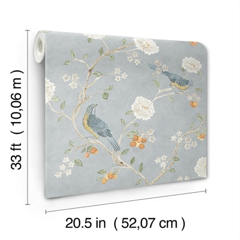 Pattern Name:Wellesley Blue Heather Chinoiserie Bird Wallpaper