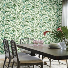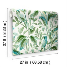 Pattern Name:White & Aqua Tropical Love Birds & Leaves Wallpaper
