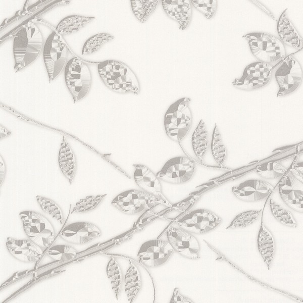 White Metal Leaf Wallpaper
