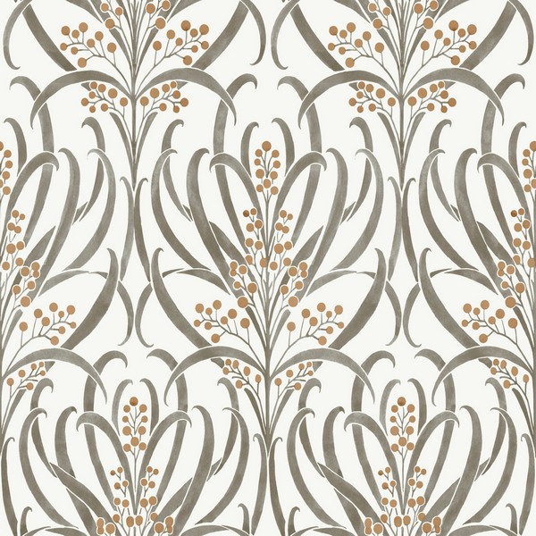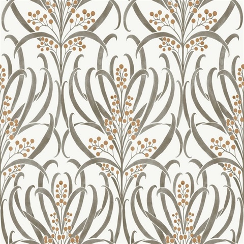 Pattern Name:White & Taupe Calluna Leaf Wallpaper