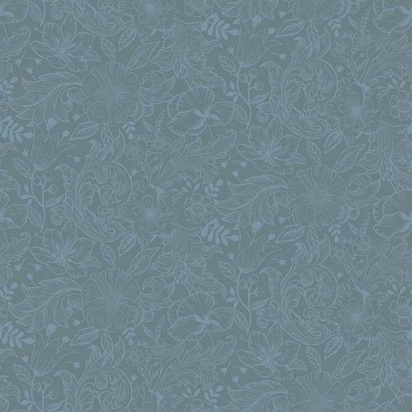 Pattern Name:Wilma Blue Scandinavian Floral Block Print Wallpaper